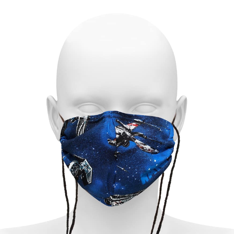These masks are made with yarn drawstring ties so they are completely adjustable. They are intended to provide a simple cover to reduce droplet spread. They DO NOT provide protection from airborne particles.